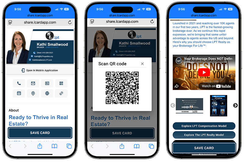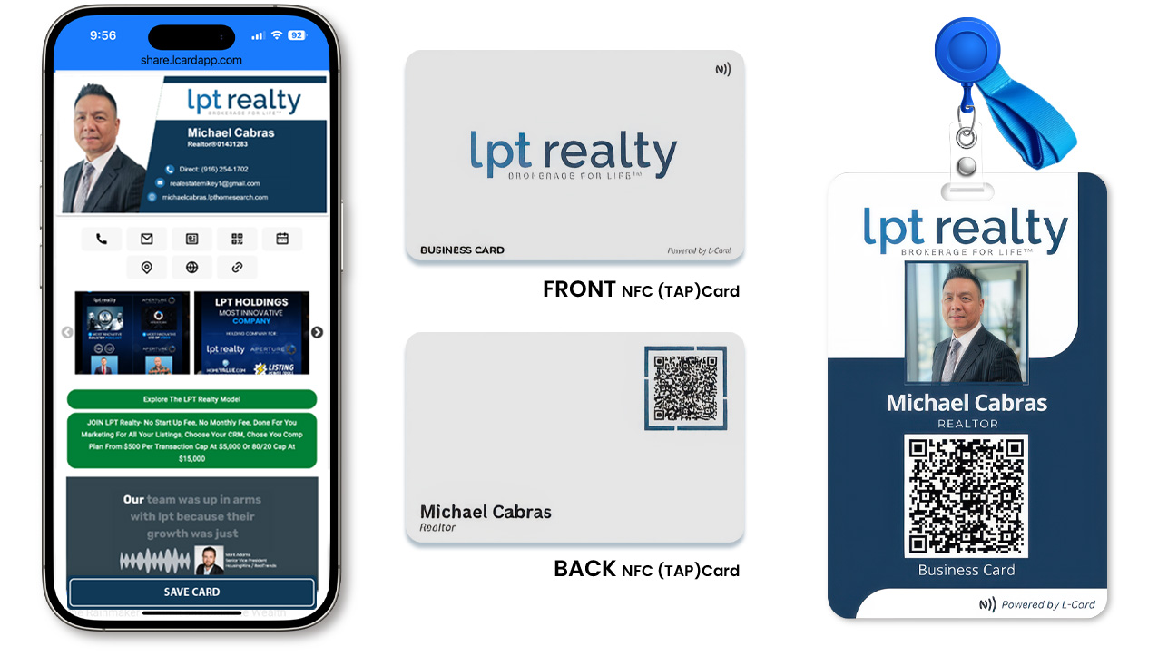 Share your L-Card via NFC, QR code, text message, email, or social media—no printing, no limits.